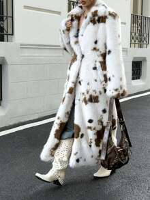 Casual Oversized Cow Print Faux Fur Jacket, Fashionable For Daily Wear, Dates, Music Festivals, Autumn/Winter