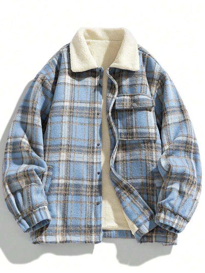 Men's Fashion Plaid Knitted Thickened Thermal Lined Jacket Coat