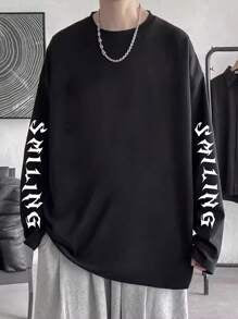Manfinity Roghcode Men's Round Neck Loose Fit Long Sleeve T-Shirt With Letter Print, For Fall