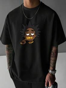 Men's Graphic Slogan & Cartoon Print Round Neck Short Sleeve Casual T-Shirt