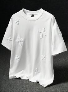 Manfinity EMRG Men Street INS Matching Full Cross Flocking Casual Daily Tee, Gift For Boyfriend, Husband, Anniversary, White T-Shirt, Men Designer T-Shirt, 2000s Style