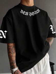 Manfinity EMRG Men's Letter Print Loose Fit Casual Round Neck Short Sleeve T-Shirt