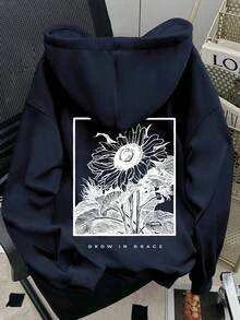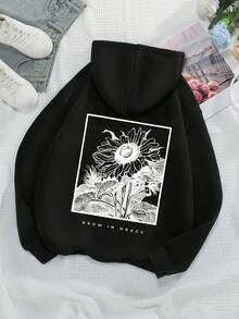 SHEIN Women's Casual Printed Fleece Drop Shoulder Hoodie